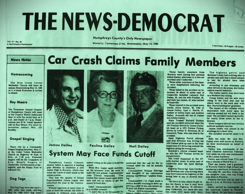 My name is Andrew Daily. In 1980, all of my family were either killed or crippled by a drunk driver when I was two years old. It changed my life forever. We were driving home from a family vacation on Mother’s Day when we were hit head on. The driver was so intoxicated he was driving in the wrong lane, in oncoming traffic. My father had no time to get out of the way.